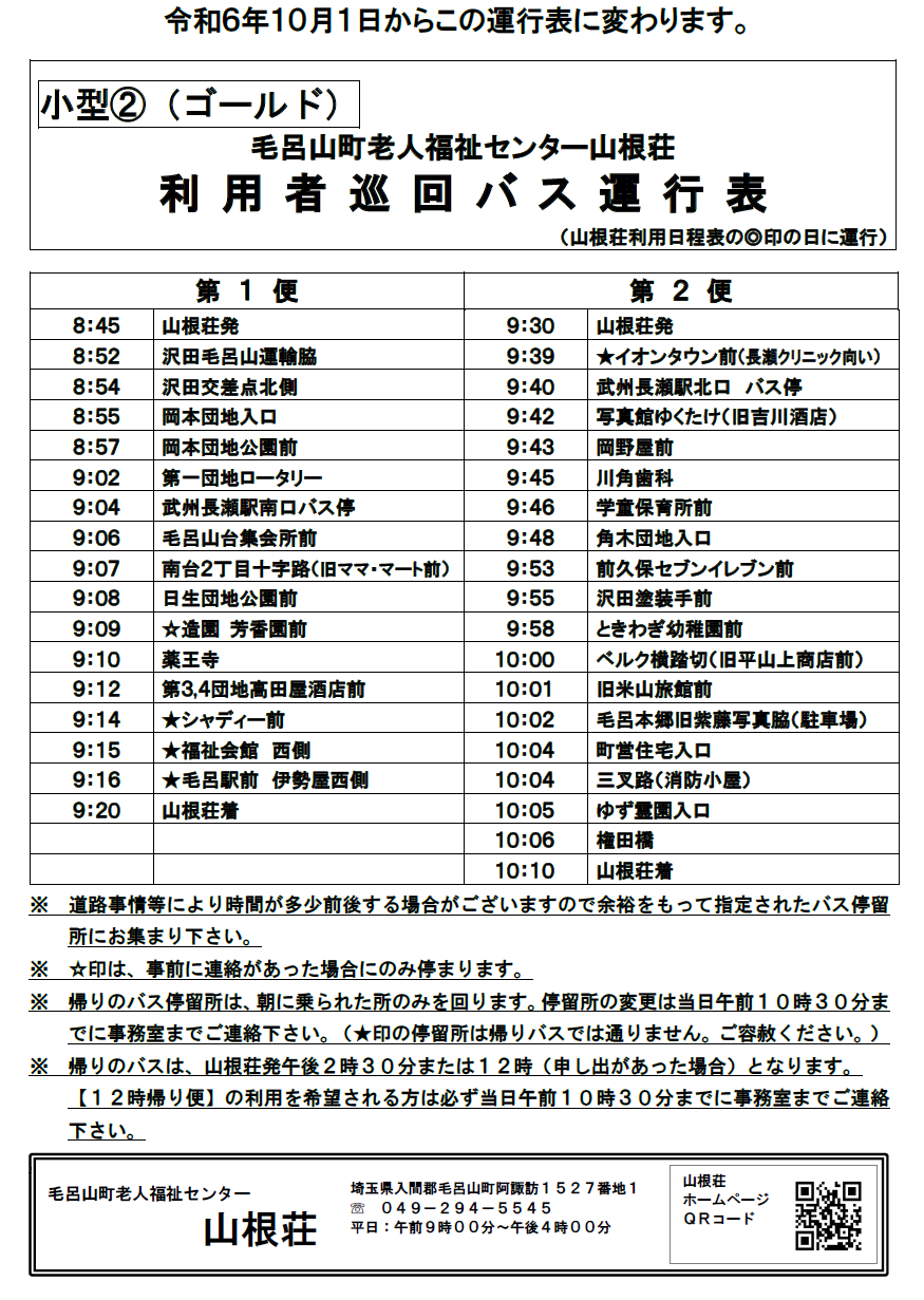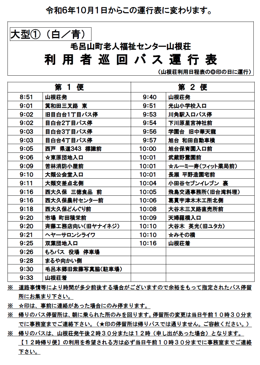 山根荘をご利用の際、山根荘専用巡回バスが大変便利です。